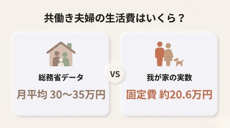 • 共働き世帯の生活費は月30〜35万円前後。我が家は固定費だけで約20.6万円