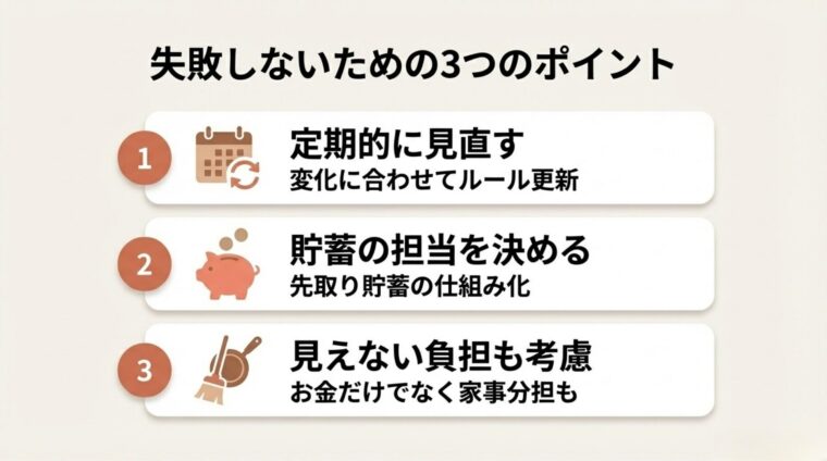 どの分担方法を選ぶにしても、うまくいかせるためのポイントがあります。