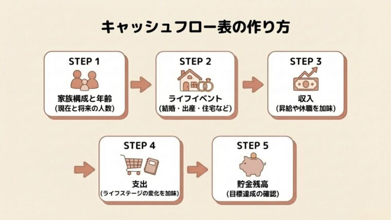 これらをもとにキャッシュフロー表を作成していきましょう。