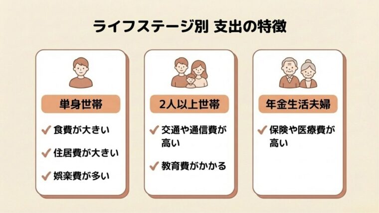 令和2年の総務省「家計調査」では以下のように変化しています。