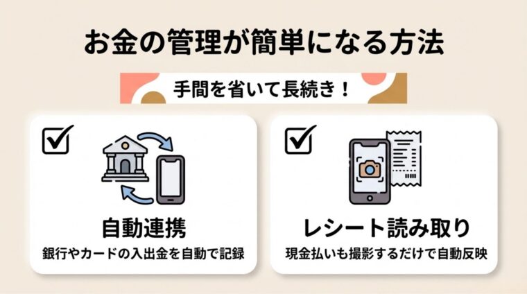 これらの機能は、家計簿をつづけるハードルを下げてくれます。