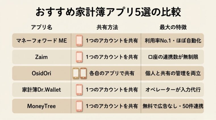 夫婦・カップルにおすすめの家計簿アプリ5選|機能比較