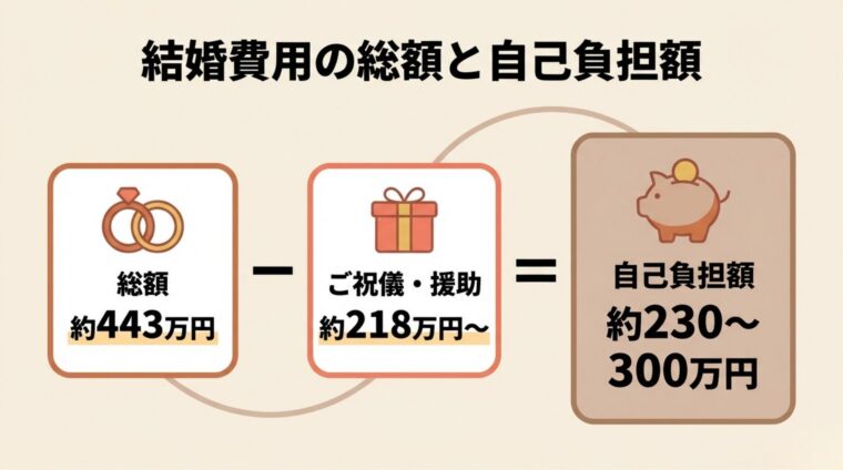 - 結婚にかかる費用は約443万円