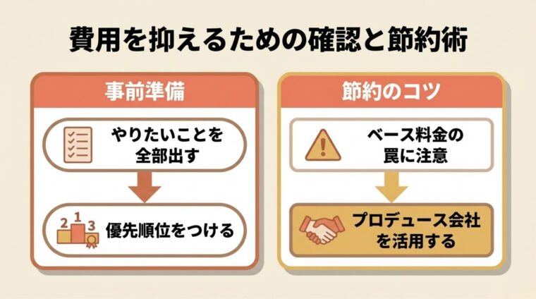 - 結婚式の費用を節約する方法と確認すること