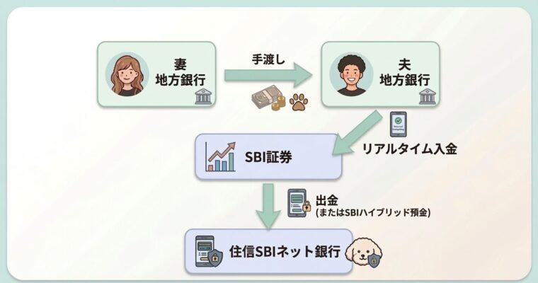 給料受け取りが地方銀行指定の場合でも、SBI証券を活用することで住信SBIネット銀行に給料を移動できます。